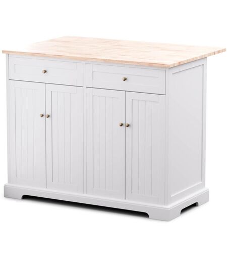 BLUMFELDT Ilot central de cuisine avec plan extensible - Meuble de cuisine avec 2 tiroirs et 4 portes, 106,5 x 49,5 - 69,5 x 89 cm - Ilot de cuisine Ideal pour