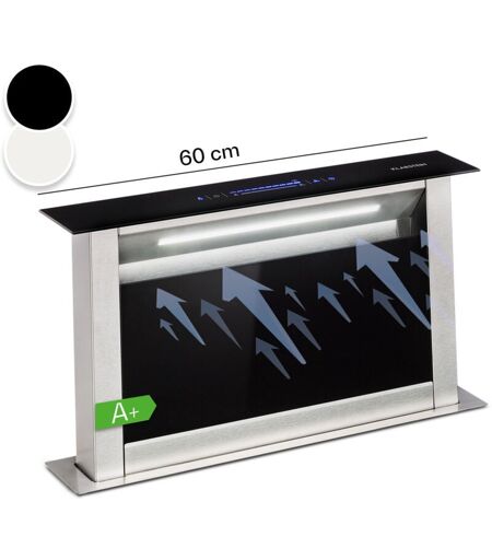 Comme un as dans votre manche : l'élégante hotte aspirante à courant descendant Klarstein Royal Flush Eco n'aspire pas par le haut, mais agit directement là où la vapeur est générée, tout près de votre surface de cuisson. Elle est donc particulièrement efficace et élimine de manière fiable la vapeur et les odeurs avec un débit d'air évacué de 576 m³/h maximum. Avec un design très élégant, elle s'intègre parfaitement et disparaît dans le plan de travail une fois le travail terminé. Et pour plus de durabilité, le Royal Flush Eco vous est livrée avec particulièrement peu de matériaux d'emballage en plastique. Un hotte puissante , classe et invisible : l'élégante Royal Flush Eco de Klarstein . Caractéristiques: Élégance discrète : plan de travail escamotable Tout en vue : éclairage commutable de la plaque de cuisson Contrôle facile : Touch-To-Slide panneau de commande pratique Économe : classe d'efficacité énergétique A++ Eye-catcher : verre, acier inoxydable et éclairage Livraison: 1 x ...