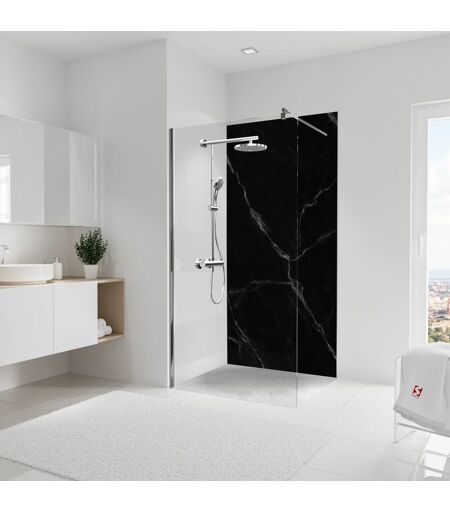 Panneau mural 100 x 210 cm Marbre de carrare noir, revêtement pour douche et salle de bain, DécoDesign softtouch Schulte