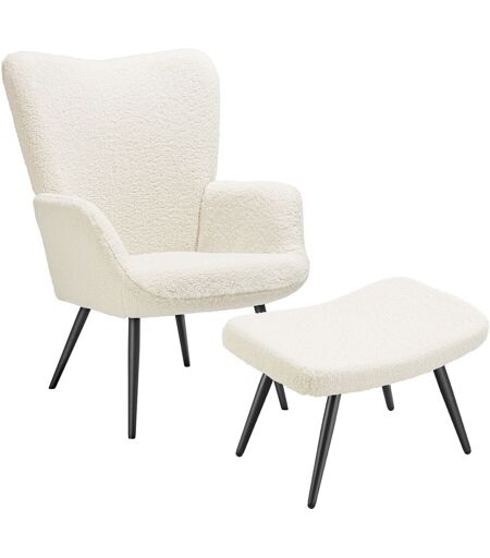 TecTake GmbH Fauteuil Hygge rembourré, ergonomique, charge maximale 150 kg - Avec tabouret, Bouclé crème/noir