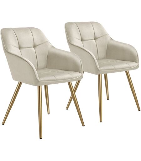 TecTake GmbH Chaise MARILYN aspect velours capitonné - crème/or, Lot de 2