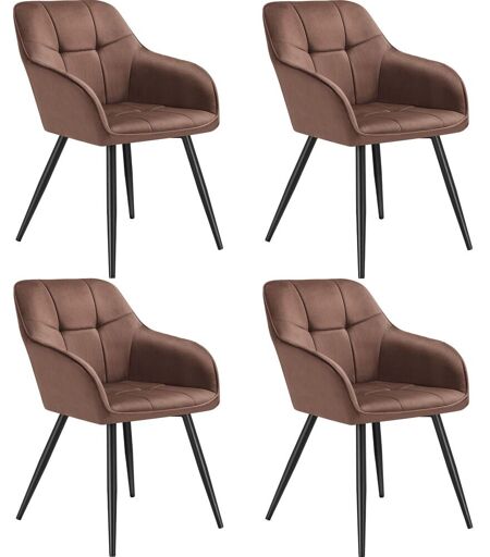 TecTake GmbH Chaise MARILYN en velours - brun-noir, Lot de 4