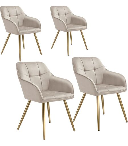 TecTake GmbH Chaise MARILYN aspect velours capitonné - taupe/or, Lot de 4