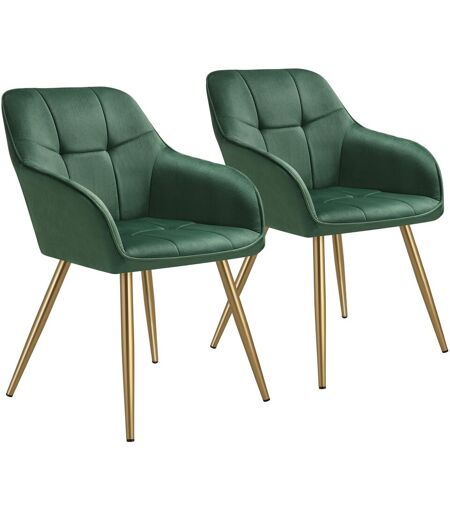 TecTake GmbH Chaise MARILYN aspect velours capitonné - vert foncé/or, Lot de 2
