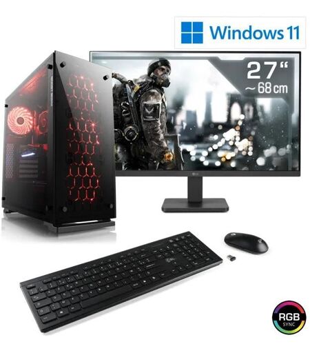PC Gaming, CSL Computer, M11390H, Core i5-12400F, GeForce RTX 3050, 16 Go DDR4 RAM, M.2 SSD 1000 Go, 27 pouces Full-HD, Win 11