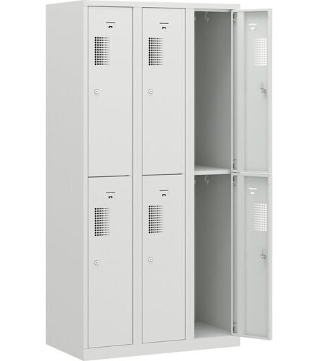 Découvrez le vestiaire à deux étages Amsterdam, une solution astucieuse pour optimiser votre espace ! Avec ses dimensions compactes (900 mm de largeur x 500 mm de profondeur x 1800 mm de hauteur), ce vestiaire en acier peint époxy combine robustesse et élégance. Son coloris gris clair RAL 7035 s'intègre parfaitement dans divers environnements, des ateliers aux clubs de sport. Doté de 3 compartiments et 6 casiers, il offre de multiples possibilités de rangement. Chaque casier est équipé d'une tringle et de 3 crochets pour une organisation optimale de vos vêtements. Les portes s'ouvrent à 90°, facilitant l'accès, tandis que les perforations intégrées assurent une circulation d'air efficace. Avec un verrouillage à cylindre sécurisé, vos effets personnels sont protégés en toute tranquillité. Prêt à l'emploi, ce vestiaire est non seulement une solution de rangement pratique, mais aussi un atout design pour votre espace. Optez pour Amsterdam et transformez votre gestion d'espace ! ...