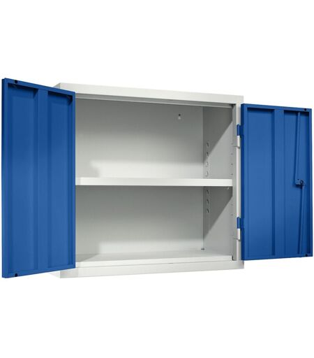 Armoire murale d'atelier, h x l x p 600 x 650 x 320 mm, portes en tôle pleine, bleu gentiane RAL 5010. Produit livré = monté. Hauteur = 600 mm. Largeur = 650 mm. Profondeur = 320 mm. Type de porte = porte en tôle pleine. Verrouillage = serrure à cylindre. Nombre de tablettes = 1 pces. Propriété = verrouillable. Coloris corps = gris clair RAL 7035. Coloris façade = bleu gentiane RAL 5010. Matériau = tôle d'acier, peinte époxy. Poids = 13.2 kg. Type de produit = armoires murales d'atelier. Espace de rangement supplémentaire même en cas de superficie limitée. Cinq modèles au choix. Avec portes en tôle pleine ou vitrées. Construction robuste en tôle d'acier peinte époxy avec alésages dans la paroi arrière prévus pour fixation murale (accessoires de montage non compris dans la livraison). Verrouillage par serrure à cylindre. Corps gris clair RAL 7035. Portes en trois coloris au choix. Portes vitrées avec vitre en verre acrylique résistant aux chocs. ...