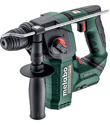 Caractéristiques du produit : Marteau sans fil très léger et compact avec moteur Brushless pour un perçage sans fatigue dans toutes les positions de travail.La classe 12 volts de Metabo - léger dans la main, puissant dans l'action.Puissance de perçage, efficacité et durée de vie maximales grâce à la technologie brushless et au mécanisme de percussion haute performance.Marteau perforateur avec 2 fonctions : Perçage au marteau et perçage.Metabo VibraTech (MVT) : travail sans danger pour la santé et sans fatigue, même en utilisation continue.Système électronique Vario-Tacho-Constamatic (VTC) à ondes pleines pour travailler avec des vitesses de rotation adaptées aux matériaux et qui restent constantes sous charge.Arrêt de sécurité électronique du moteur en cas de blocage de l'outil d'insertion pour travailler en toute sécurité.Éclairage de travail LED pour une visibilité optimale sur le lieu de perçage. Caractéristiques techniques : Tension de la batterie 12 VPuissance max. Énergie de ...