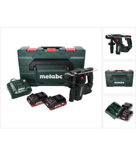 Metabo - bh 18 ltx bl 16 Perceuse à percussion sans fil 18 v 1,3 j SDS-plus Brushless (600324800) + 2x Batteries 4,0 Ah + Chargeur + Coffret x
