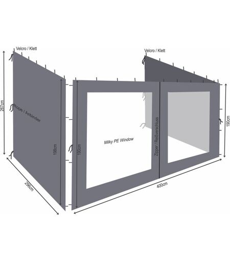Quick-star - 3 Seitenteile Rank Anbau 3x4m Anthrazit mit pe Fenster
