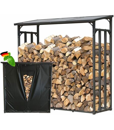 QUICK STAR Brennholzunterstand 143 x 70 x 145 cm in Anthrazit (RAL7043) mit Wetterschutz – ideal für Kaminholz mit 33 cm Schnittlänge. Robustes Gestell aus pulverbeschichtetem Stahl, Dachrahmen aus Aluminiumprofilen, Dach aus 6 mm Polycarbonatplatten. ✔ Stabile Konstruktion Das Gestell besteht aus pulverbeschichtetem Stahl mit 40x40 mm Standbeinen. Der Dachrahmen besteht aus Aluminiumprofilen 15x39 mm. ✔ Polycarbonat Dach Das Dach besteht aus 6 mm starken Doppelstegplatten aus Polycarbonat – transparent und UV-beständig. ✔ Lagerkapazität Mit einer Tiefe von ca. 70 cm bietet der Unterstand Platz für zwei Holzscheitlagen hintereinander. Geeignet für Holz mit ca. 33 cm Länge. Gesamtvolumen: bis zu 1,4 Raummeter oder 2 Schüttraummeter Brennholz. ✔ Inklusive Front- und Rückwand Zum Lieferumfang gehört ein Wetterschutz für Front- und Rückseite aus Poyester mit PVC Beschichtung, jeweils mit mittigem Reißverschluss. ✔ Optionales Zubehör separat erhältlich - Seitlicher Wetterschutz ...