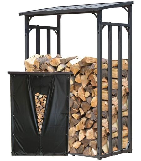 QUICK STAR Brennholzunterstand 130 x 70 x 185 cm in Anthrazit (RAL7043) mit Wetterschutz – ideal für Kaminholz mit 33 cm Schnittlänge. Robustes Gestell aus pulverbeschichtetem Stahl, Dachrahmen aus Aluminiumprofilen, Dach aus 6 mm Polycarbonatplatten. ✔ Stabile Konstruktion Das Gestell besteht aus pulverbeschichtetem Stahl mit 40x40 mm Standbeinen. Der Dachrahmen besteht aus Aluminiumprofilen 15x39 mm. ✔ Polycarbonat Dach Das Dach besteht aus 6 mm starken Doppelstegplatten aus Polycarbonat – transparent und UV-beständig. ✔ Optimale Lagerkapazität Mit einer Tiefe von ca. 70 cm bietet der Unterstand Platz für zwei Holzscheitlagen hintereinander. Geeignet für Holz mit ca. 33 cm Länge. Gesamtvolumen: bis zu 1,6 Raummeter oder 2,5 Schüttraummeter Brennholz. 1 Raummeter entspricht 1,6 Schüttraummeter Kaminholz/Brennholz in Schnittlänge ca. 33cm ✔ Inklusive Front- und Rückwand Zum Lieferumfang gehört ein PVC Wetterschutz für Front- und Rückseite, jeweils mit mittigem Reißverschluss. ✔ ...