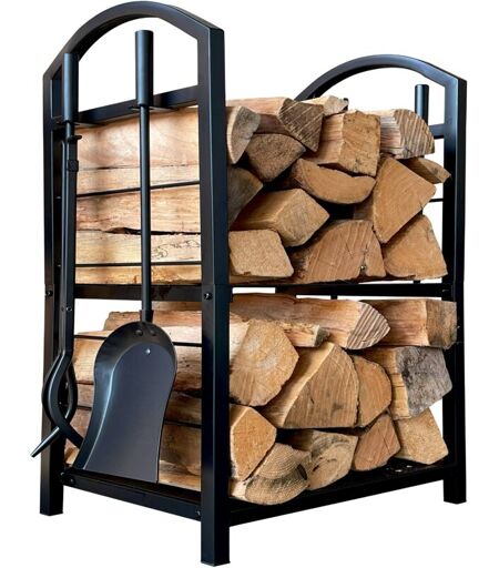QUICK-STAR Metall Kaminholzregal 45 x 30 x 74 cm Kaminholzlager Innen mit Schaufel Zange Bürste Schürhaken Besteck