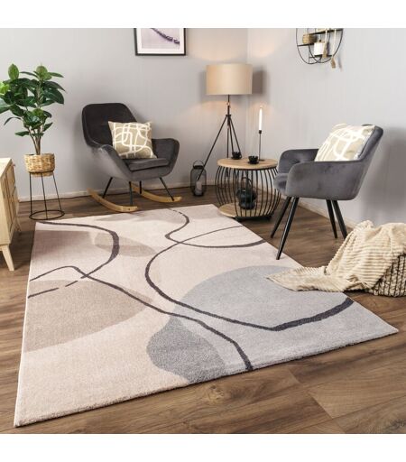 Tapis Salon Chambre Adulte Poils Ras Motif Abstrait Motif Geometrique 3D 120x170 cm, Crème 2 - Paco Home