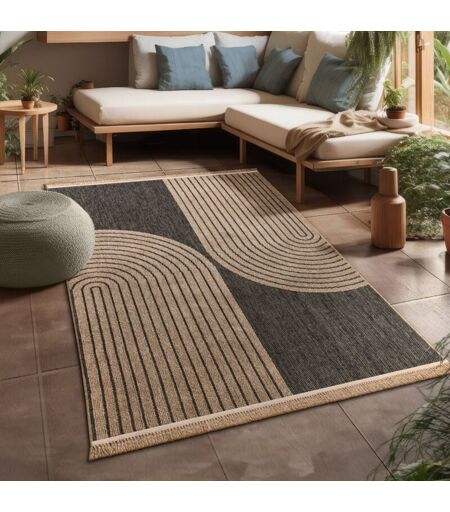 Paco Home Tapis Exterieur Terrasse Salon Cuisine Motif Boho Motif Fleuri Geometrique 160x220 cm, Anthracite