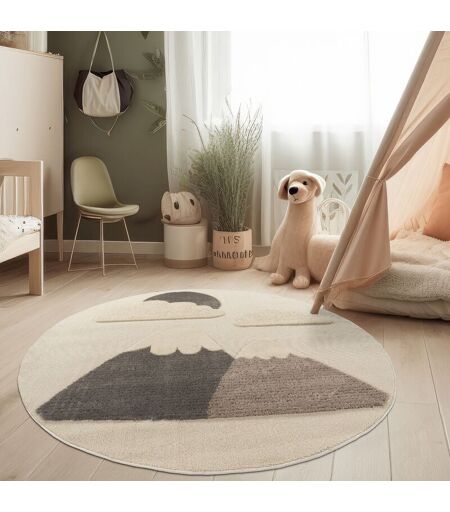 Paco Home Tapis moderne pour chambre d'enfant Tapis de jeu doux Effet 3D Tons naturels 120 cm rond, Crème 2