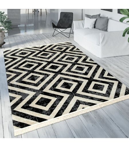 Tapis Noir Blanc Balcon Terrasse Extérieur Style Scandinave Motif Losanges Robuste 120x170 cm - Paco Home