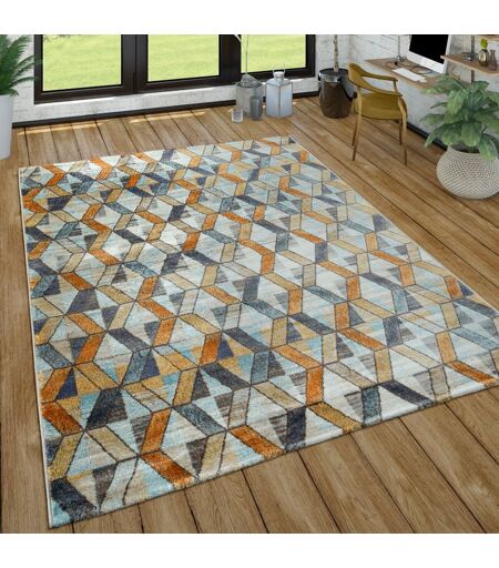 Paco Home - Tapis Poils Ras Salon Aspect Usé Abstrait Moderne Style Industriel Coloré 80x150 cm