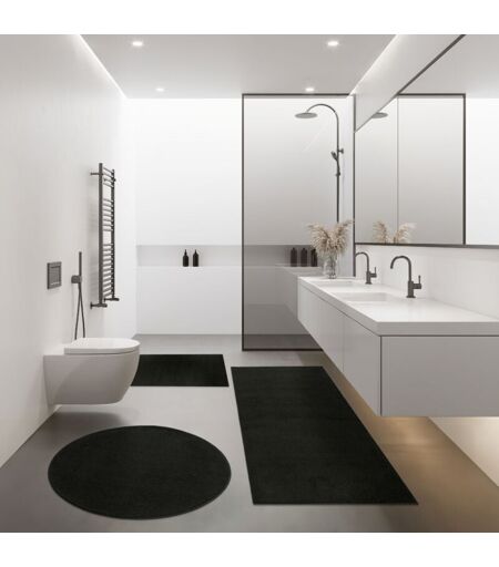 Paco Home Tapis De Bain Moderne Salle De Bain Tapis Shaggy Moelleux Doux Uni Noir 80 cm rond