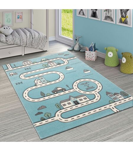 Paco Home - Tapis Enfant Chambre Enfant Moderne Tapis Apprentissage Rue Voiture Maison Bleu 120x170 cm