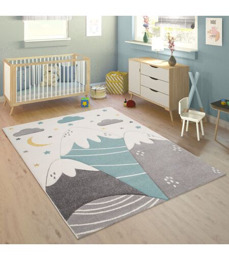 Tapis Enfant Chambre Enfant Motif Montagne Lune Étoiles En Pastel Bleu Gris 80x150 cm - Paco Home