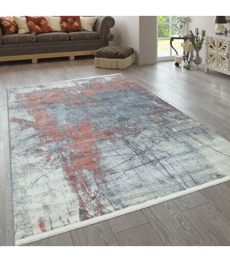 Tapis De Salon Coloré Bleu Rouge Blanc Abstrait Peinture Design Style Usé Poils Ras 120x170 cm - Paco Home