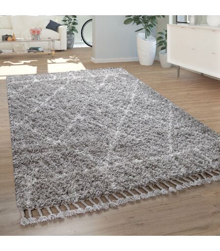 Tapis à Poils Longs Gris Salon Motif Oriental Style Berbère Doux Shaggy 160x230 cm - Paco Home