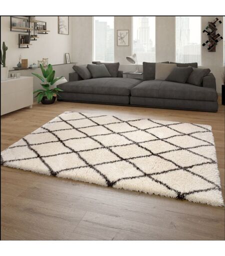 Paco Home - Tapis Poils Hauts Moelleux Moderne Shaggy Style Flokati Motif Losange Crème 80x150 cm