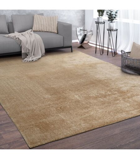 Paco Home Tapis De Salon Poils Ras Lavable Monochrome Style Moderne Beige 120x170 cm