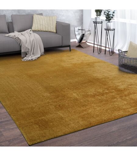 Paco Home Tapis De Salon Poils Ras Lavable Monochrome Style Moderne Jaune Moutarde Jaune 160x220 cm