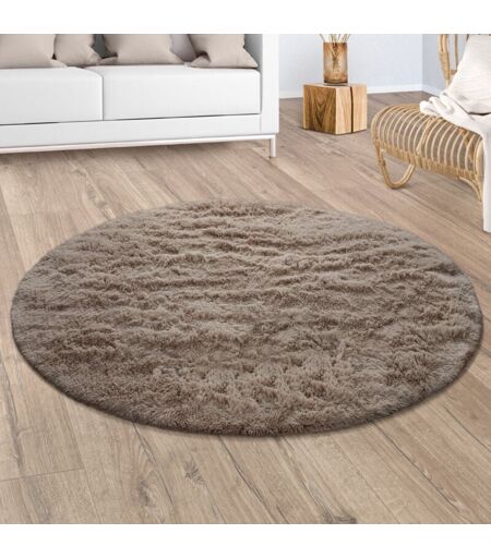 Tapis De Salon Poil Long Shaggy Fausse Fourrure Pelucheux Uni Pelucheux Beige Taupe 120 cm rond - Paco Home