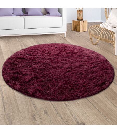 Paco Home - Tapis Shaggy Tapis De Salon Fausse Fourrure Poil Long Moelleux Rouge Bordeaux 80 cm rond