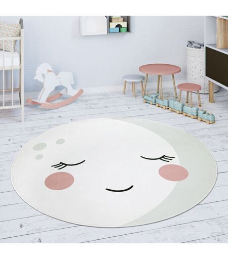 Paco Home Tapis Rond Chambre Enfant Tapis De Jeux Tapis Bébé Motif Lune Blanc Cassé Blanc 120 cm rond