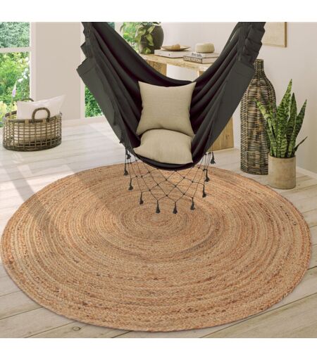 Tapis Rond Salon Jute Motif Ethnique Boho Moderne Fait Main Tapis Naturel 80 cm rond, Naturelle 3 - Paco Home