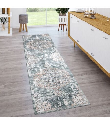 Tapis De Salon Poils Ras Vintage Esthétique Orientale Abstrait Gris Vert 60x100 cm - Paco Home