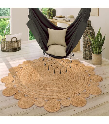 Tapis Rond Salon Jute Motif Ethnique Boho Moderne Fait Main Tapis Naturel 80 cm rond, Naturelle 2 - Paco Home