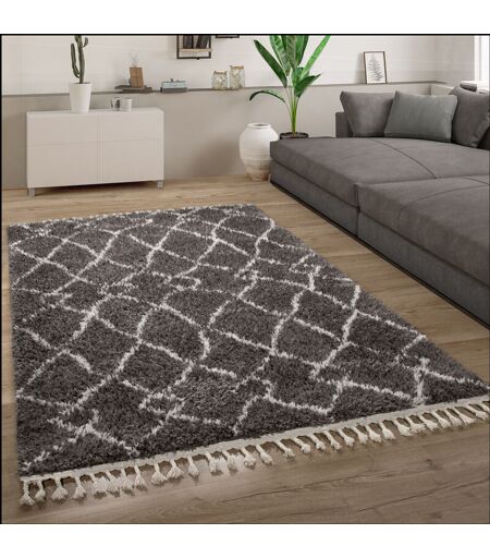 Paco Home Tapis Shaggy Tapis De Salon Poils Longs Scandinave Franges Moelleux Moderne 80x150 cm, Anthracite
