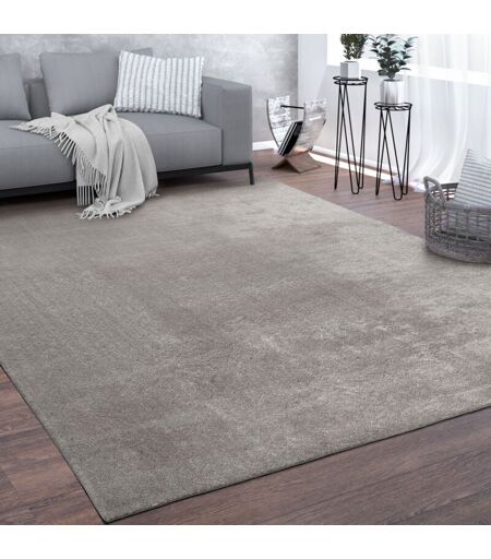 Paco Home Tapis De Salon Poils Ras Lavable Monochrome Style Moderne Gris 140x200 cm