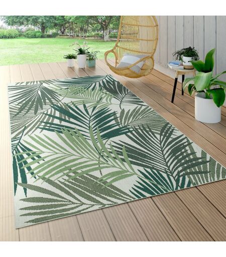 Tapis Intérieur & Extérieur Tissage à Plat Jungle Découpé Design Palmiers Floral Vert 80x250 cm - Paco Home