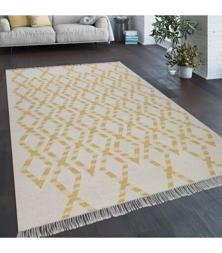 Paco Home Tapis De Salon Style Bohème Franges Tissé À La Main Mélange Laine-coton Jaune 60x110 cm
