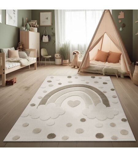 Paco Home Tapis moderne pour enfants Tapis de jeu à poils doux Effet 3D Chambre d'enfant Crème Sable 160x220 cm