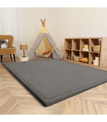 Paco Home - Tapis Chambre Enfant Bebe Fille Garcon Moelleux Antidérapant Moderne Gris, 120 cm rond