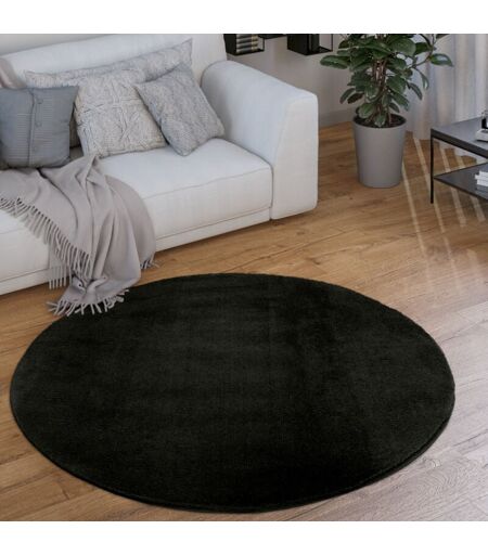 Paco Home Tapis De Salon Poils Ras Lavable Monochrome Style Moderne Noir 160 cm rond