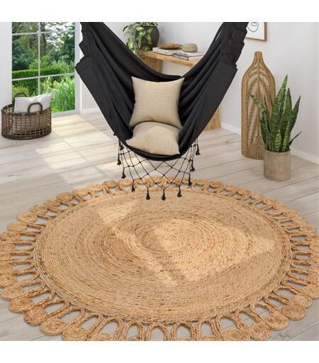 Tapis Naturel Jute Motif Boho Moderne Motif Ethnique Uni Tissé a La Main Beige 160 cm rond - Paco Home