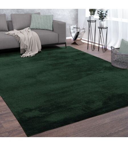 Paco Home Tapis De Salon Poils Ras Lavable Monochrome Style Moderne Vert Pétrole 80x300 cm