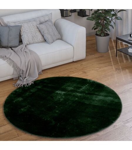 Paco Home Tapis De Salon Poils Ras Lavable Monochrome Style Moderne Vert Pétrole 80 cm rond
