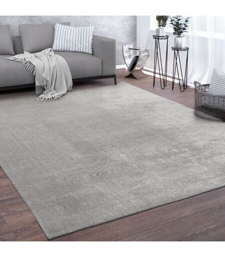 Paco Home - Tapis De Salon Poils Ras Lavable Monochrome Style Moderne Argent 100x200 cm