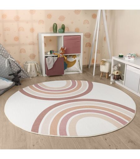 Tapis Rond Chambre Enfant Bebe Fille Garcon Arc-en-ciel Lavable En Machine Pink, 100 cm rond - Paco Home