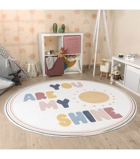 Paco Home - Tapis Rond Chambre Enfant Bebe Fille Garcon Arc-en-ciel Lavable En Machine 120 cm rond, Multicolore