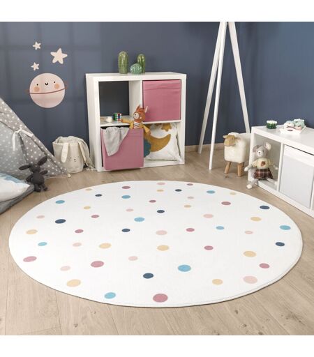 Paco Home - Tapis Rond Chambre Enfant Bebe Fille Garcon Arc-en-ciel Lavable En Machine 120 cm rond, Multicolore 3